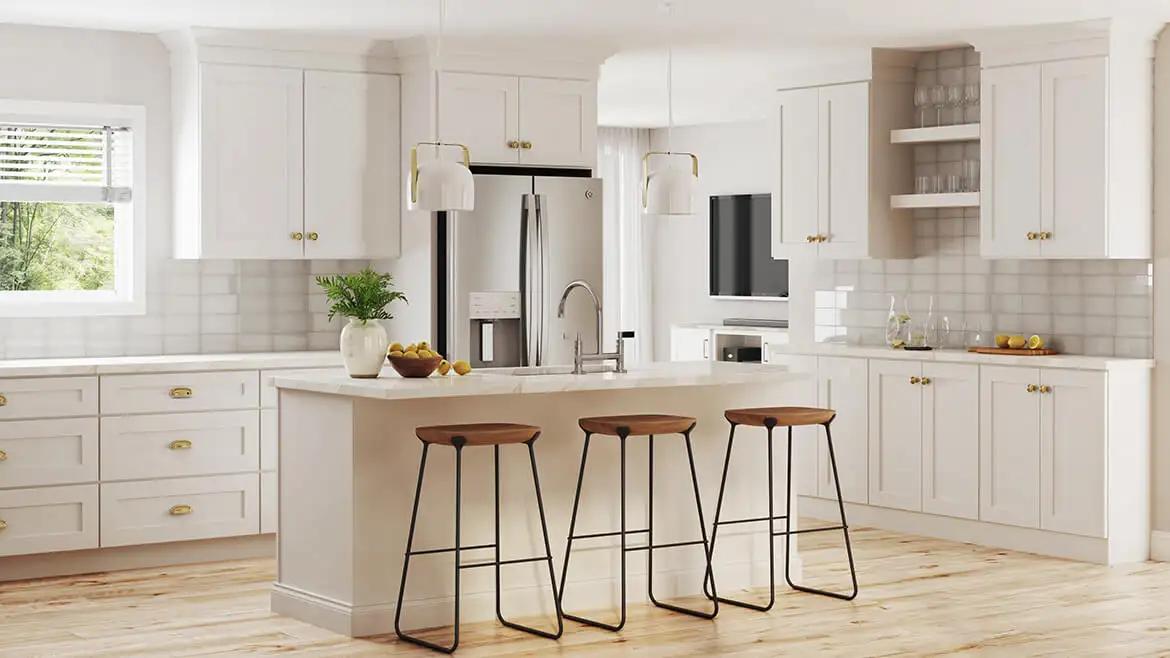 White Shaker cabinets are a popular choice for homeowners and designers alike, and they are known for their clean lines, timeless appeal, and versatility. Whether you’re aiming for a modern, traditional, or transitional kitchen design. Explore versatile wide and narrow shaker styles with inset and full overlay options. Shop popular shaker cabinets in every shade of white now with the best prices.