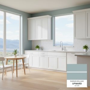 White Shaker cabinets feature a classic design that never goes out of style. The flat-panel doors with simple, clean lines create a look that’s both elegant and versatile, making these cabinets a staple in kitchens across various design styles.